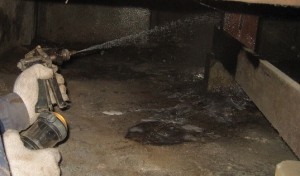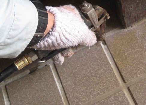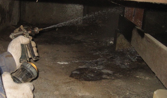 床下の写真です。 木部と土壌に薬剤処理を行います。また、玄関の土間にも薬剤を注入します。
